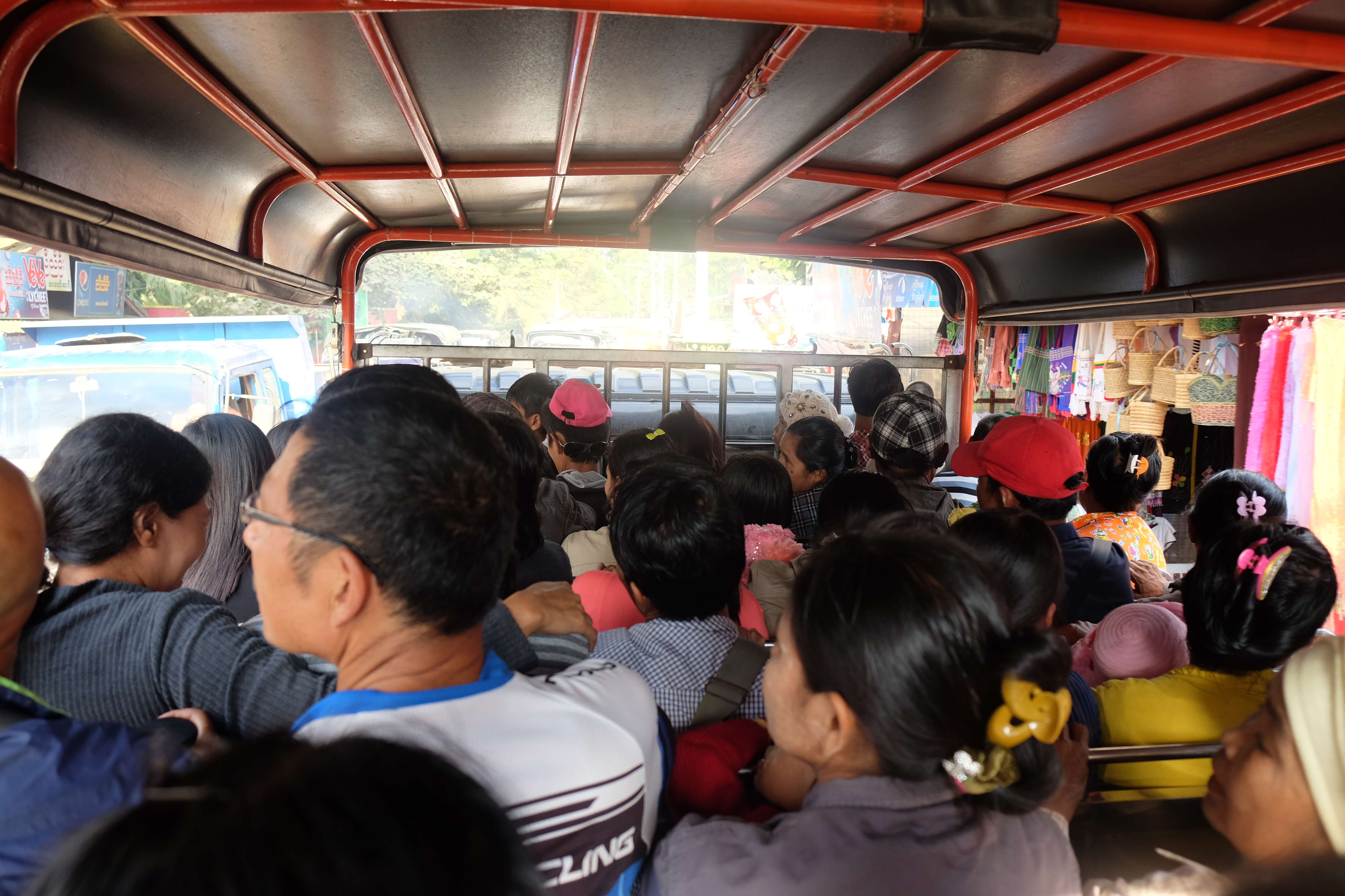 What happens there at the base level was so hilarious to us, because obviously there’s no explanation or anything, you just approach one of the dozens of trucks waiting there, climb the ladder and wait to be seat, which I mean literally, because they will make sure to fit as many people in the back as possible.