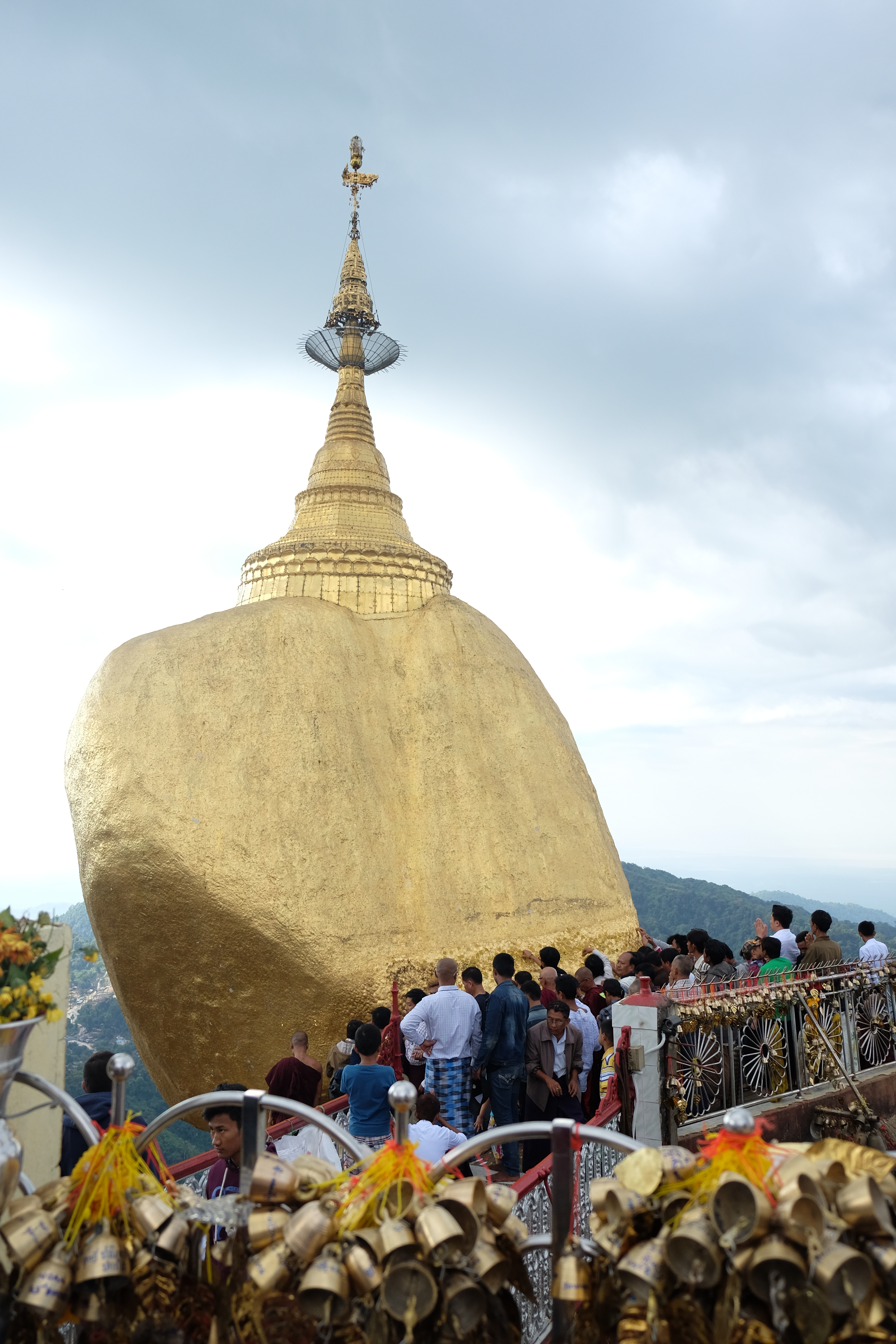 With all the photos, it took a while for us to reach the actual Golden Rock and we were all the more impressed when we finally got there. Obviously, the atmosphere on a day like that is not like the one that the magical National Geographic kind of pictures convey, but it was still so energetic and inspiring to see all these people gathering there. You can actually buy little gold leaves to stick to the rock, but it is allowed to men only. (Maybe someone can explain that to me?)